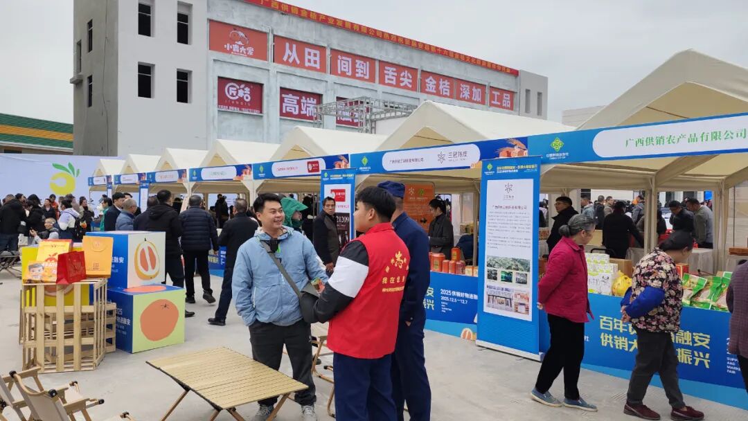 “广西供销大集”活动作为此次嘉年华活动内容之一,广西供销金桔产业发展有限公司以“百年贡果聚融安 供销大集促振兴”为主题,精心搭建供销特色产品展销平台,有效促进融安金桔与各类优质农产品的产销精准对接。活动当天,共有20余家企业踊跃参展,多家展位展销融安金桔产品,现场互动热烈,群众参与积极性高涨,活动整体成效超出预期。