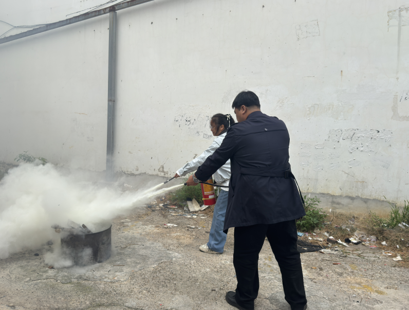 理论学习结束后,实操演练在供销市场空地内有序开展。演练现场模拟了初期火灾场景,参训人员分组上阵,在工作人员的指导下完成灭火操作,进一步强化了消防安全意识与实操能力。