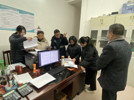 图为:县社监事会成员查阅融晟资产投资管理有限公司资料